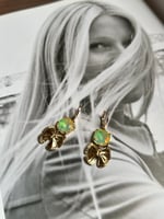 Creolen met roze gefacetteerde steen ; daaronder een mooie strik in goudkleurige afwerking.