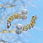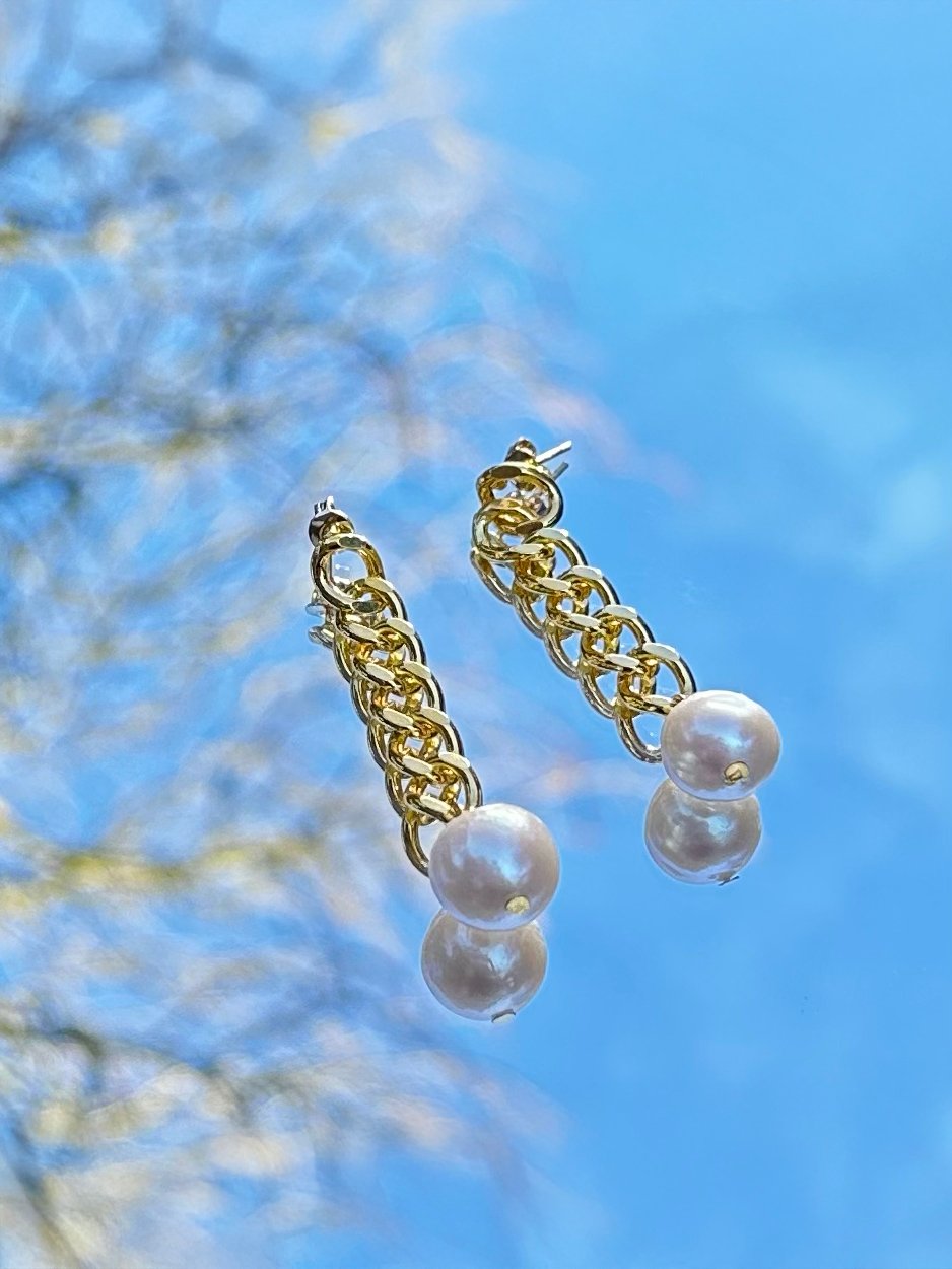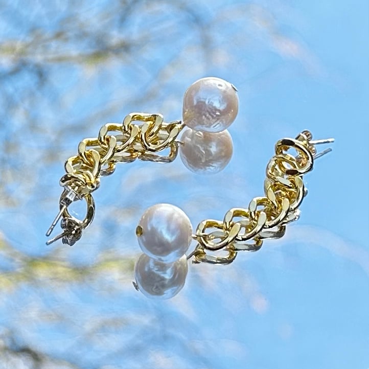 De schakel stekers zijn goudkleurig afgewerkt en hebben een ronde zoetwaterparel onderaan ; aangezien deze parels natuurlijk zijn en geen imitatie, zullen deze nooit 100% identiek zijn. We trachten echter de keuze en gelijkheid alsook de grootte van de parels zoveel mogelijk eenvormig te houden.