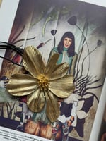 Een statement ketting om u tegen te zeggen; grote goudkleurige bloem gehangen aan een zwart leder 3-ledig touw met aansnoermogelijkheid. Jij bepaalt hoe kort of lang je de bloem wil tonen op je outfit.