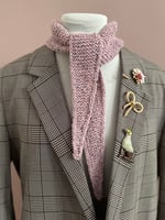 Handgebreide puntsjaaltjes in 50% wol - 25% alpaca en 25% viscose uitvoering ; deze sjaaltjes zijn 95 cm lang en hebben een licht gespikkeld tweed-achtige look.